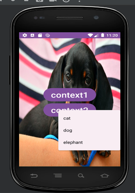 inflater.inflate(R.menu.menu2, menu); // Use menu2 for btn2