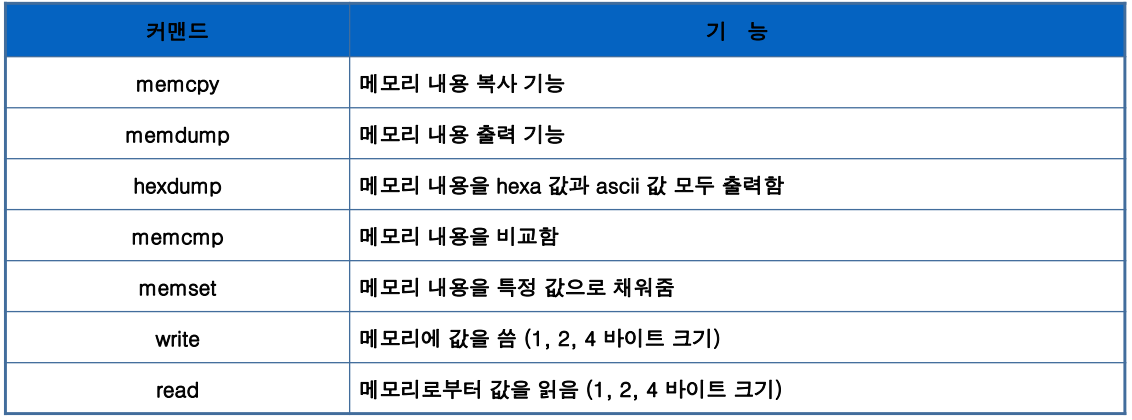 메모리 관련 커맨드, 시스템 모니터링 커멘드를 지원한다