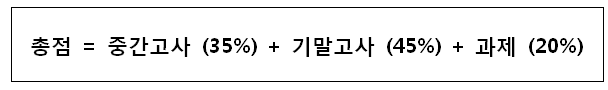 학점은 학생들이 응시한 중간/기말고사 점수 결과 및 과제 점수가 반영한다.